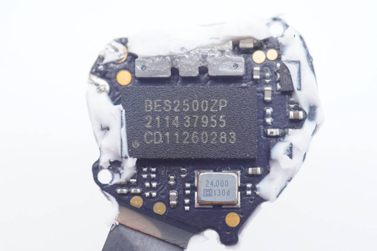 主板采用了軟硬板結(jié)合工藝,主控芯片為恒玄 BES2500ZP 藍(lán)牙音頻SoC,藍(lán)牙V5.2,支持主動(dòng)降噪、三麥通話降噪,持LE Audio-LC3技術(shù),可在相同速率下提供更高的聲音質(zhì)量;內(nèi)置壓力感應(yīng)傳感器,搭配芯海CSU18M68壓力傳感器檢測IC,實(shí)現(xiàn)各項(xiàng)功能的操控;以及三顆MEMS麥克風(fēng)單元用于主動(dòng)降噪和通話降噪功能。