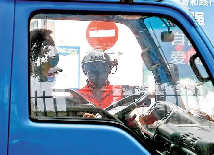 卡點(diǎn)工作人員戴著防控智能頭盔為進(jìn)出人員監(jiān)測體溫