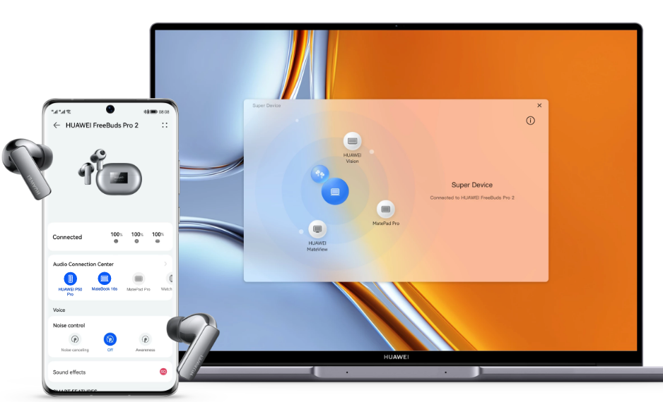 Free Buds Pro 2 可以和 Android 和 HarmonyOS 設(shè)備連接使用,在 HarmonyOS 系統(tǒng)下,則能體驗(yàn)特有的「超級(jí)終端」功能。