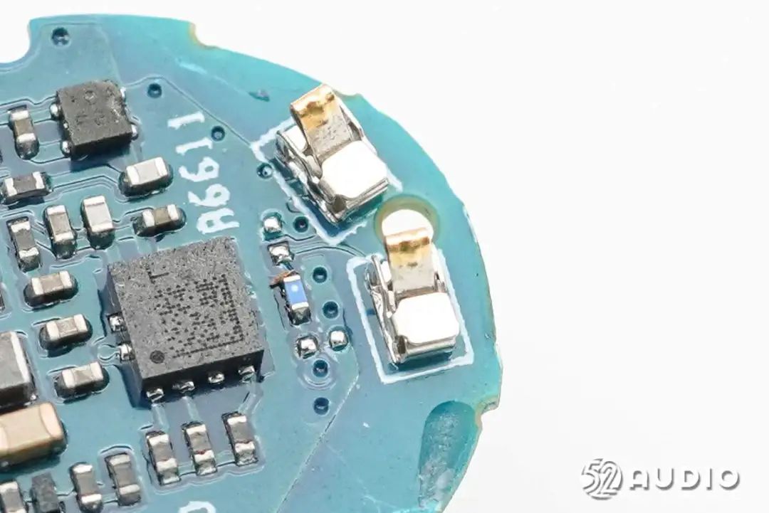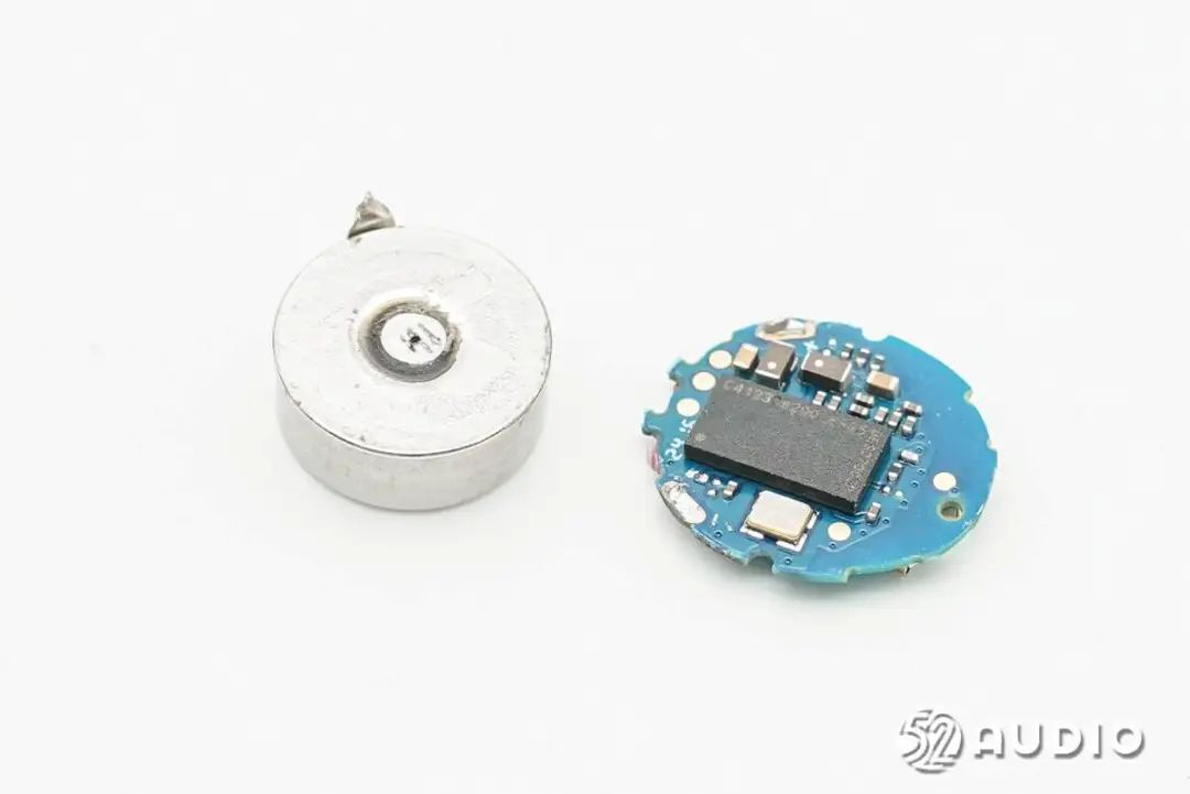 耳機揚聲器正面特寫。據(jù)官方介紹,采用了高順性PU+小體積PET復合振膜,具有出色的動態(tài)表現(xiàn)。