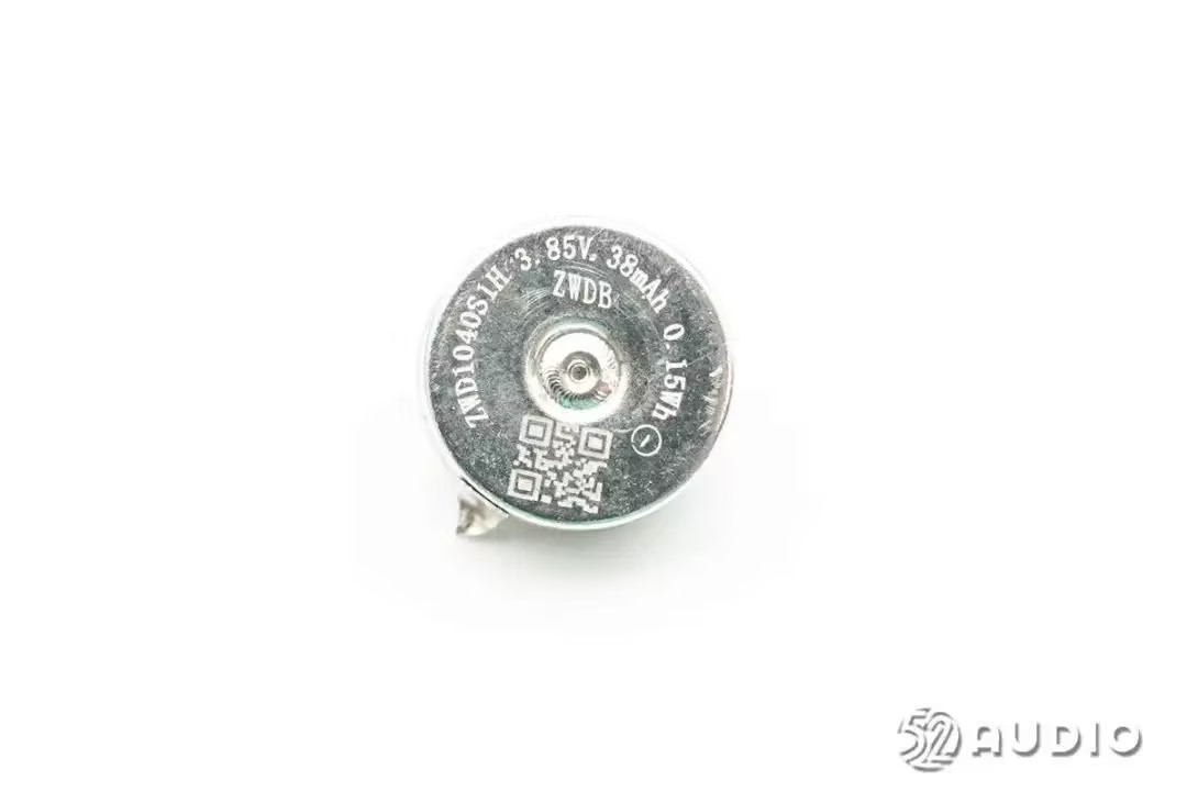 耳機內(nèi)置鋼殼扣式電池,型號:ZWD1040S1H,標稱電壓:3.85V,額定容量:38mAh 0.15Wh,來自ZWD眾旺德。